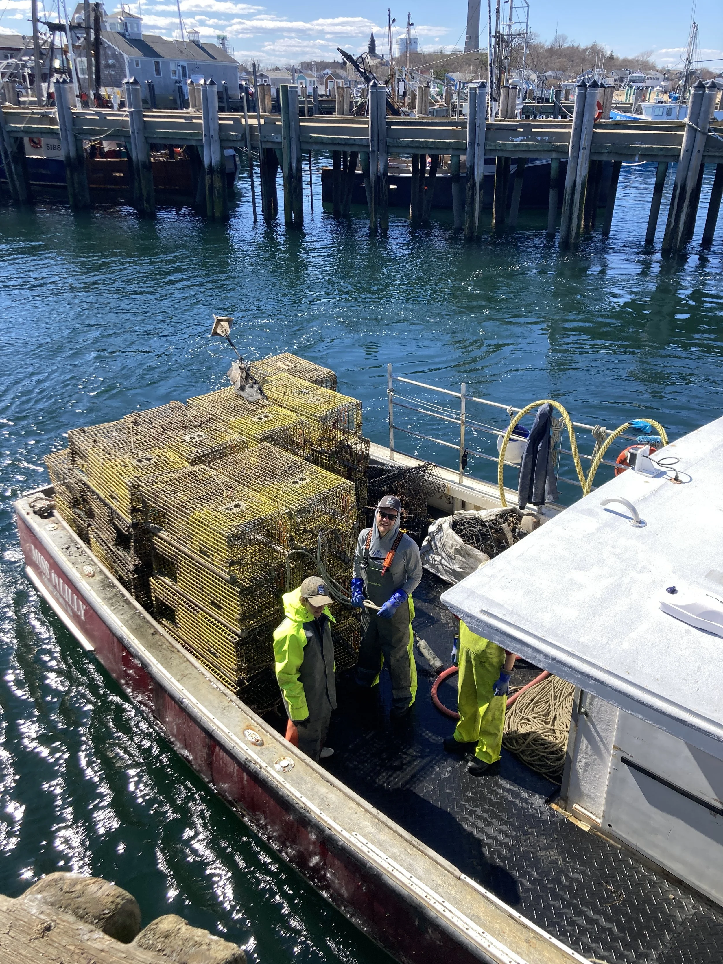 A load of traps recovered by CCS coming into the Provincetown Pier on the F/V Miss Lilly
