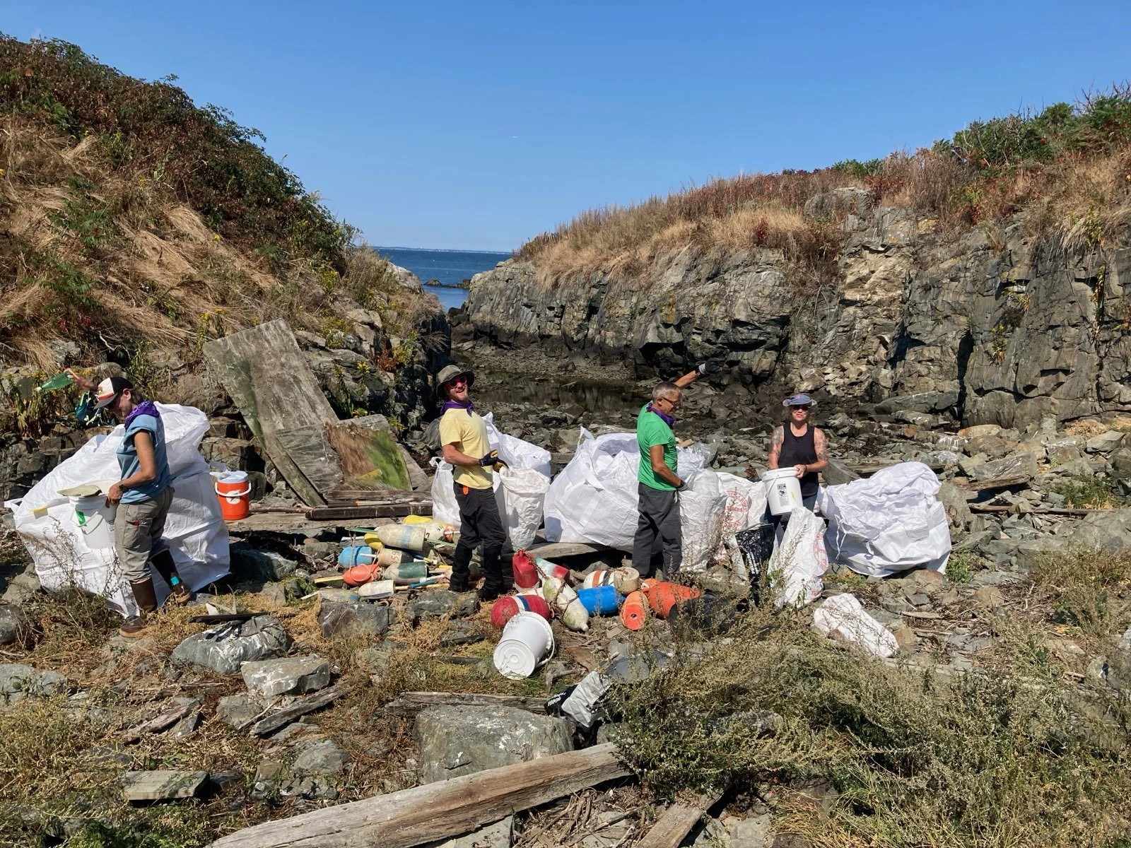 CCS staff and volunteers collecting debris on Outer Brewster Island in Boston Harbor